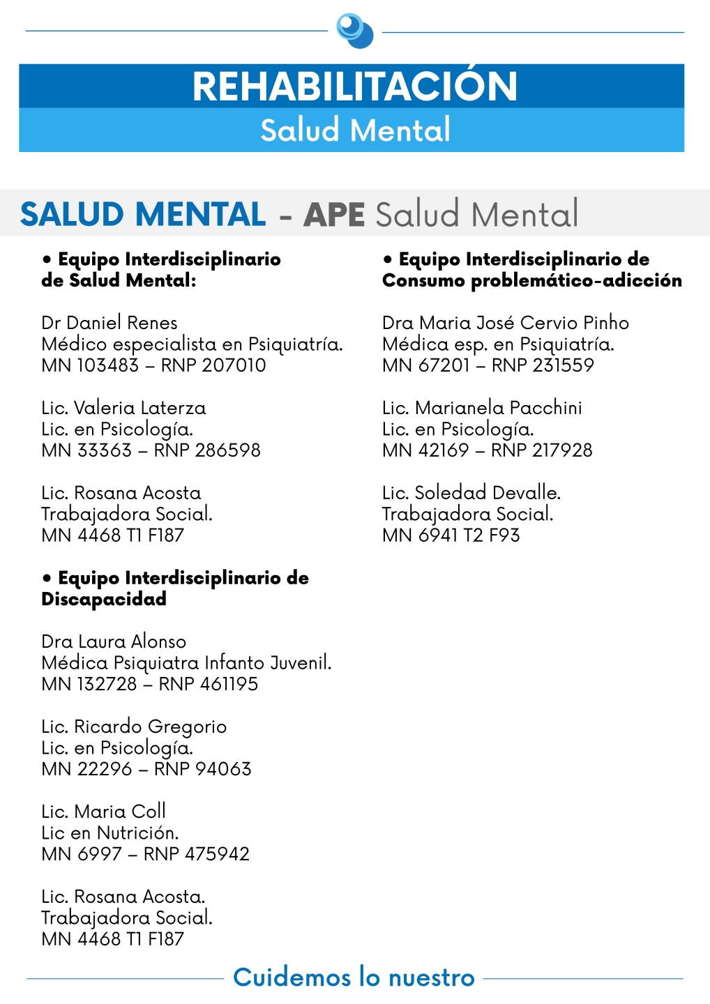 Para su atención en ambulatorio o internación el afiliado debe presentarse en el prestador con la credencial vigente y su documento de identidad. Según el tratamiento a realizarse se enviará presupuesto.