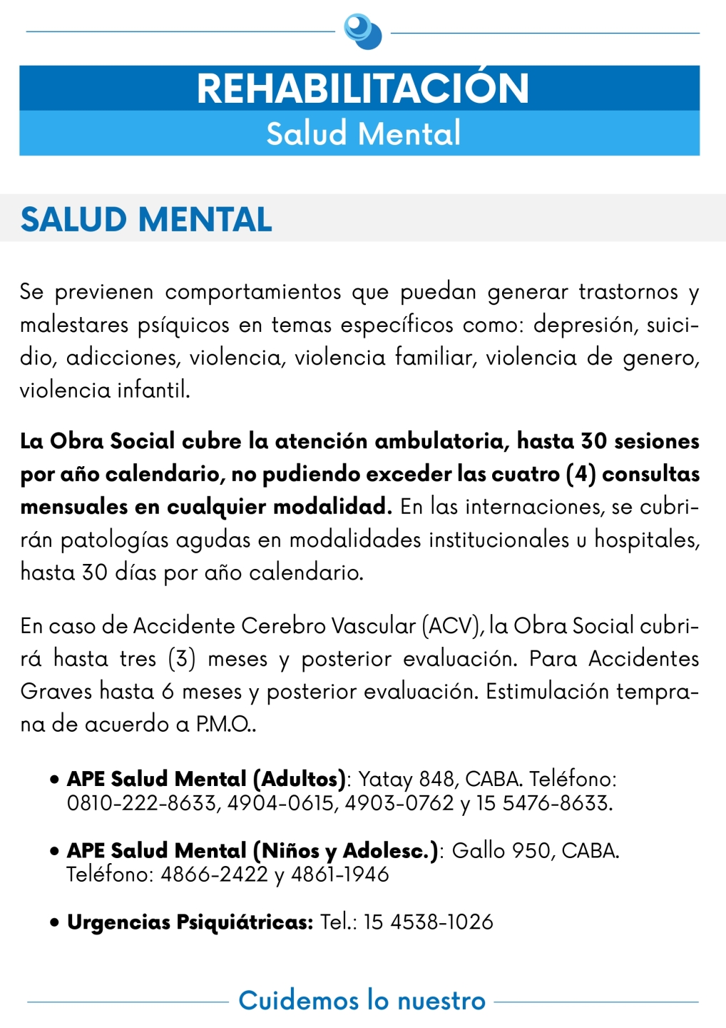 Importante : Cobertura de hasta 30 sesiones por afiliado y por año calendario en ambulatorio.